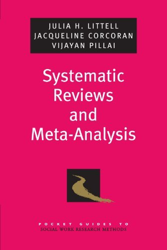” When used in tandem, systematic reviews and meta-analysis– two distinct but highly compatible approaches to research synthesis– form a powerful, scientific approach to analyzing previous studies. But to see their full potential, a social work researcher must be versed in the foundational processes underlying them. This pocket guide to Systematic Reviews and Meta-Analysis illuminates precisely that practical groundwork. In clear, step-by-step terms, the authors explain how to format topics, locate and screen studies, extract and assess data, pool effect sizes, determine bias, and interpret the results, showing readers how to combine reviewing and meta-analysis correctly and effectively. Each chapter contains vivid social work examples and concludes with a concise summary and notes on further reading, while the books glossary and handy checklists and sample search and data extraction forms maximize the books usefulness. Highlighting the concepts necessary to understand, critique, and conduct research synthesis, this brief and highly readable introduction is a terrific resource for students and researchers alike.”